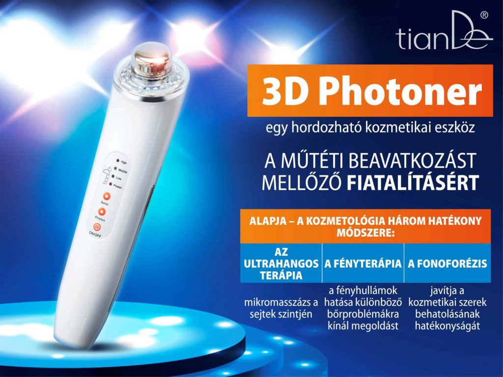 3D Photoner komplex többszínű fény- és ultrahang-terápiás készülék. Egy mini szépségszalon a nők kézitáskájában!