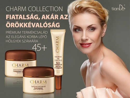 A TianDe „Charm Collection” prémium termékcsaládot kifejezetten az elegáns korba lépő hölgyek számára fejlesztettük ki. A nagy gonddal kiválasztott összetevők segítenek bőrödnek, hogy felidézze fiatalságát!