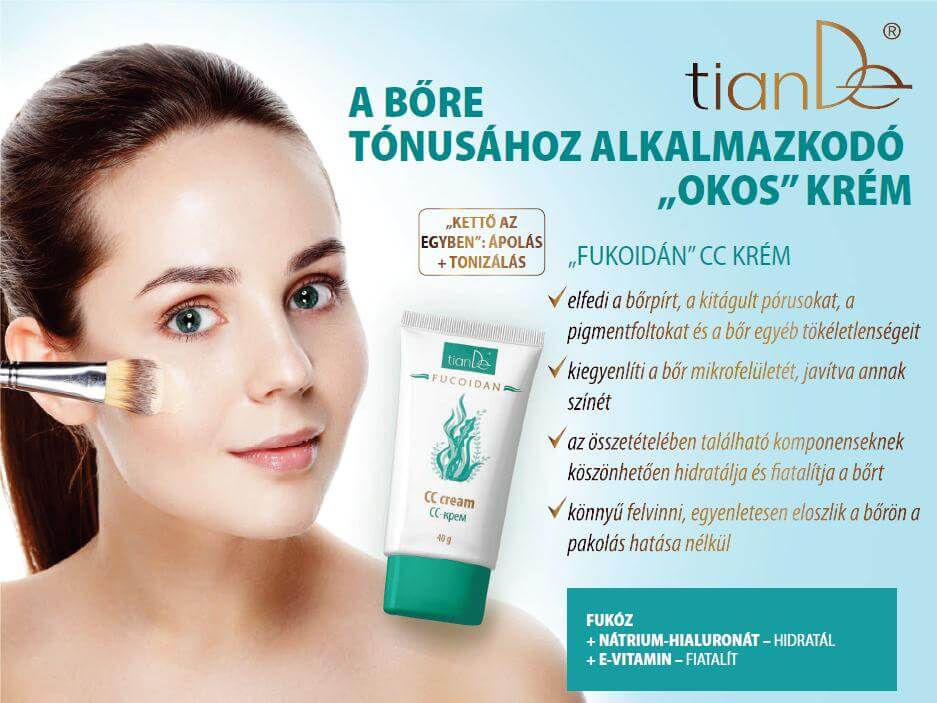 A bőr tökéletlenségeinek súytalan és megbízható eltüntetése! ápolás és védelem, ideális tónus és hidratált arcbőr. Mindez a TianDe Fucoidan termékcsaládjában megjelenő első CC krémnek köszönhetően.