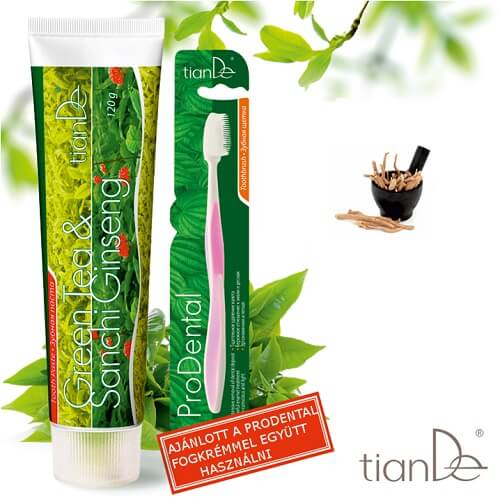 A „Zöld tea + álginzeng” fogkrém és a „ProDental” fogkefe együttes használata megsokszorozza a kívánt hatást!